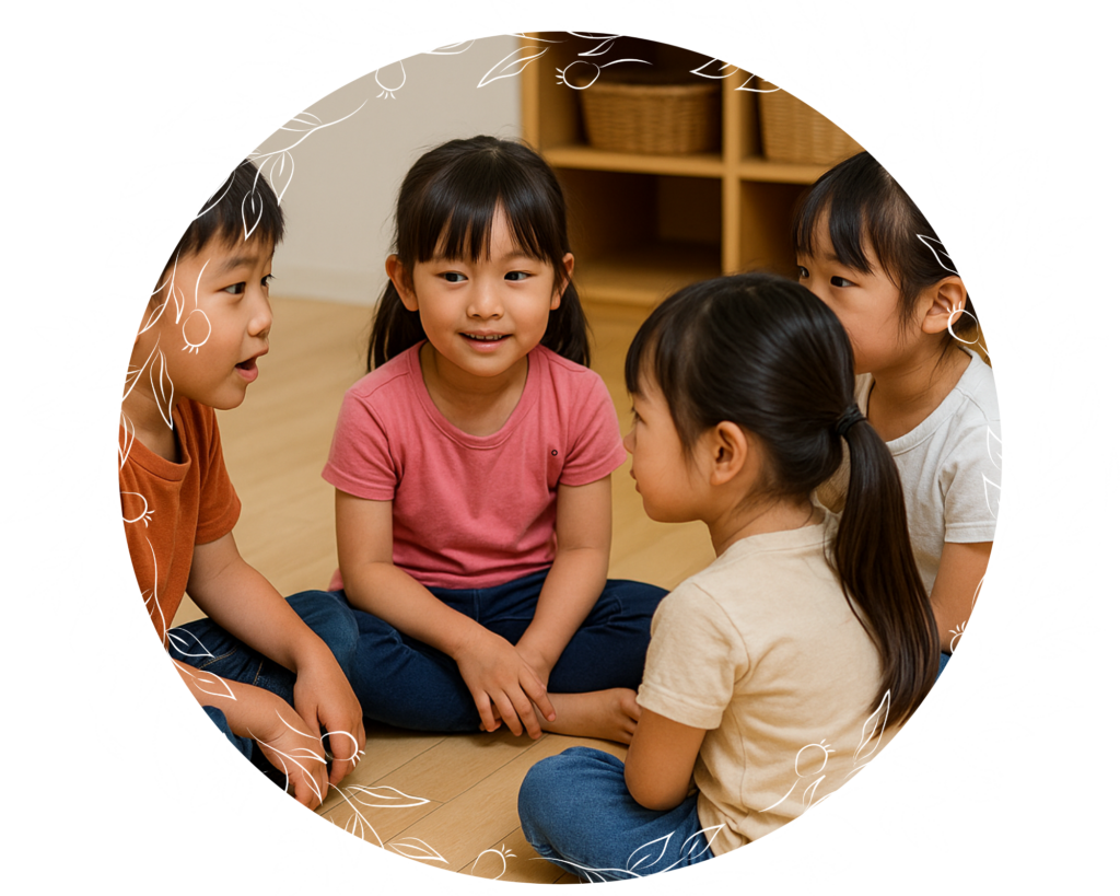 主に、国際バカロレアに基づくてPYPプログラムのテーマを扱います。社会性やお話がうまくなると、友達同士・先生との交流・対話を通して、より深く横断的に好奇心を広げ創造する力が身に付きます。