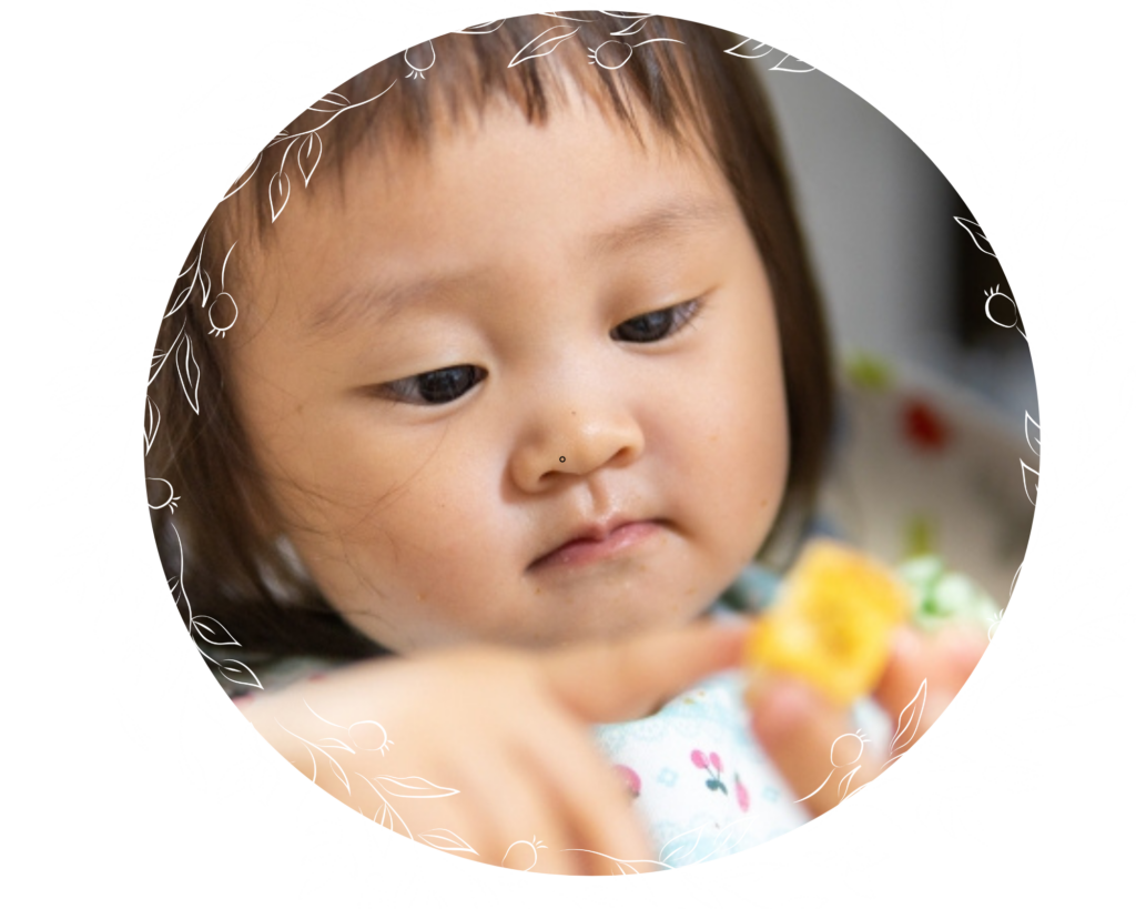 脳の発育を促し創造性や知覚できる力を養うため、主に、0歳のころから体感感覚・大人同士・親子の対話から聴覚を育みます。