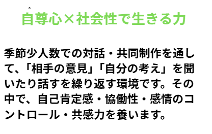 教育界全体が変革期の真っ只中にいる中で、私は子どもたちの貴重な幼児期という時期に「子供達自身が」「豊かに」「展開していける」遊びの環境づくりを今までの私の教育経験と専門家の方と協働で行おうと思いました。